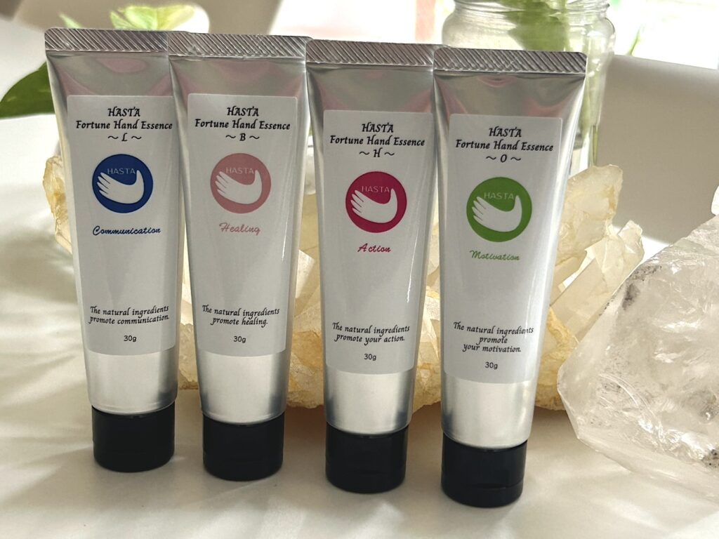 HASTA指学(R)の提唱する4本の指が持つ意味を基に、天然アロマと国産自然成分を組み合わせて開発された画期的なハンドエッセンス